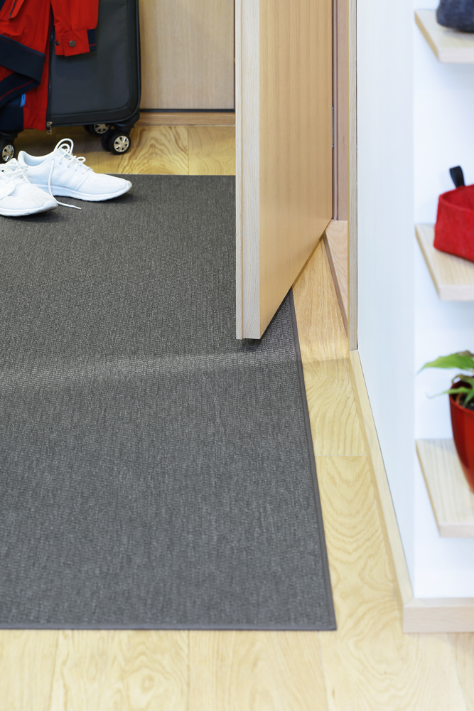 En halkskyddande baksida i latex förhindrar att mattorna glider och passar perfekt med olika golvtyper. Latexbaksidan klarar av golvvärme. Mattan har en bandkant som är mycket slitstarkt sytt runt hela mattan. Detta garanterar mattans hållbarhet för många år framöver