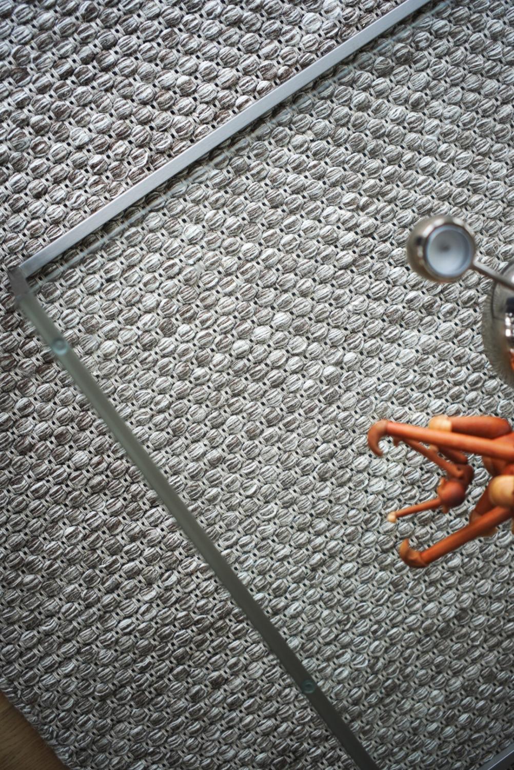 Kerala Coffee är en handvävd matta med en modern touch. Den är vävd med en vit bas tillsammans med svart och naturfärgad varptråd vilket får mattans struktur att bli väldigt tydlig. Det vita garnet samsas prydligt med inslag av nougat och brunt i olika toner. Det ger mattan en lätt melerade look och levande känsla.