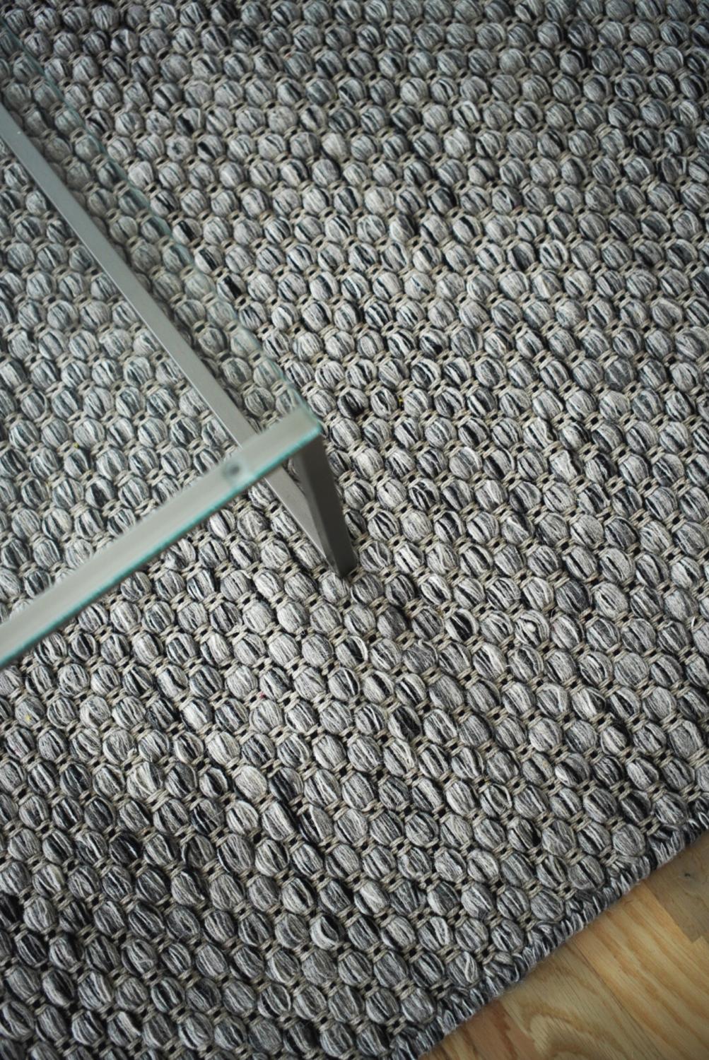 Kerala Grå är en handvävd matta i modern touch, den är vävd i en behaglig grå ton och naturfärgad varptråd. Det gråa garnet blandas med en cremevit och svart ton och ger en melerade levande känsla i mattan.