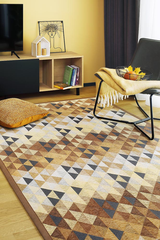Tvätta mattan i 30°C vatten med milt rengöringsmedel. I den första vattentvättningen krymper mattan till viss del (upp till 10 % på bredden och upp till 5 % på längden) och tyget blir mjukare.