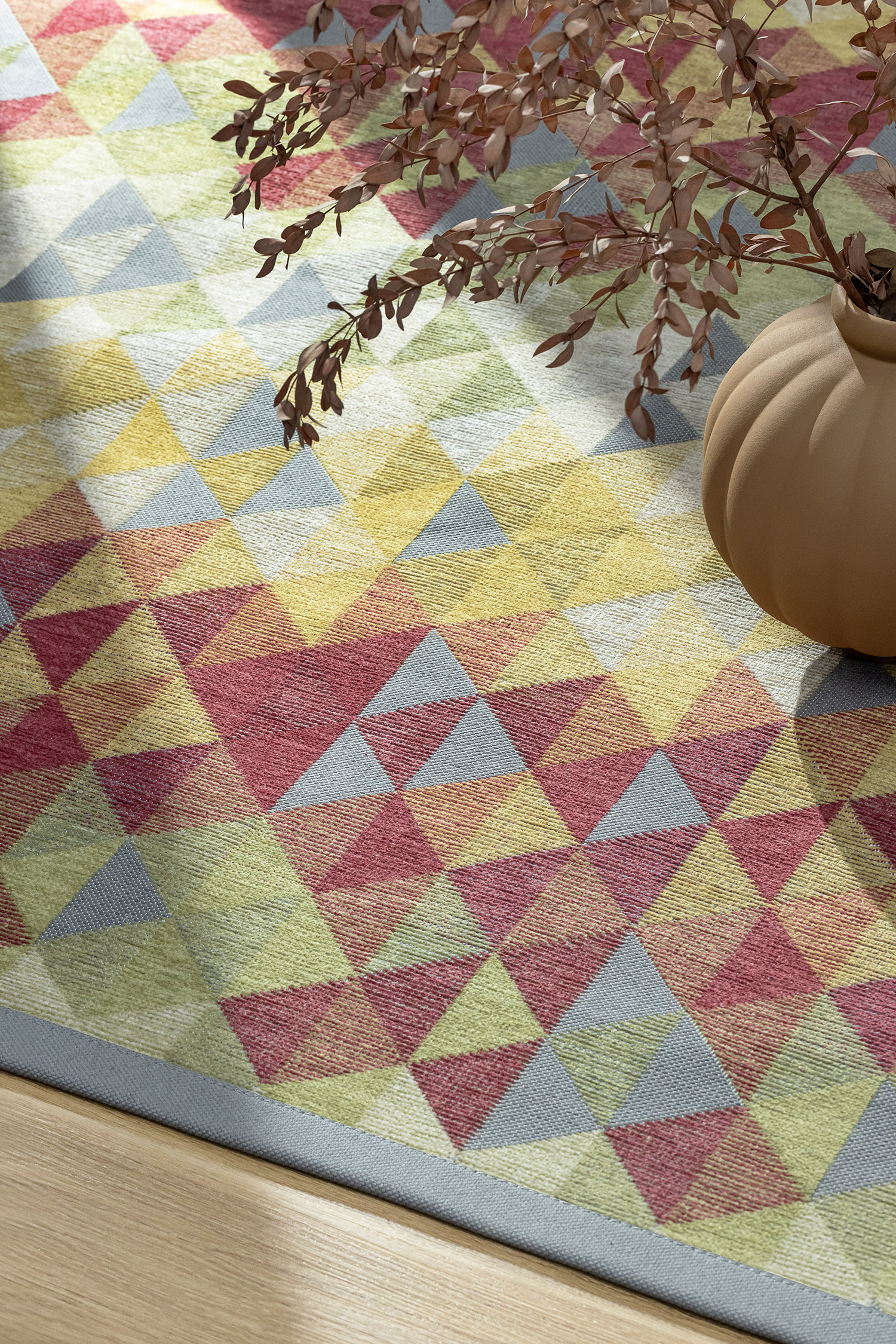 Efter tvätt – skölj noggrant, pressa ur överflödigt vatten och låt torka i ett varmt, ventilerat utrymme. Sträck gärna mattan lätt medan den är fuktig för att behålla formen.