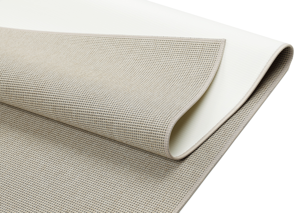 En halkskyddande baksida i latex förhindrar att mattorna glider och passar perfekt med olika golvtyper. Latexbaksidan klarar av golvvärme. Mattan har en bandkant som är mycket slitstarkt sytt runt hela mattan. Detta garanterar mattans hållbarhet för många år framöver