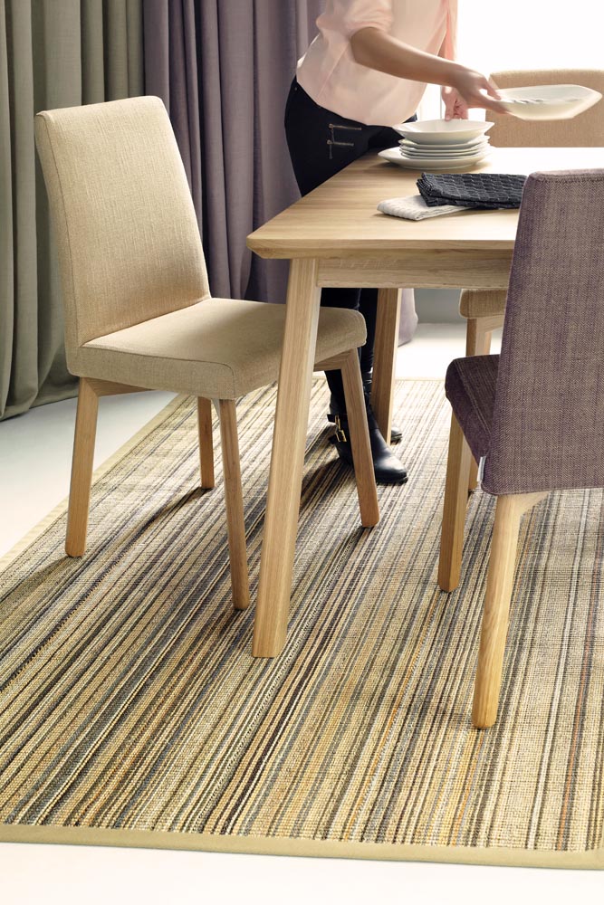Den höga slitstyrkan hos naturlig sisal gör mattan praktisk och hållbar. Livos har ett insytt halkskyddad av latex och avslutas med en ton-i-ton-bandkant.