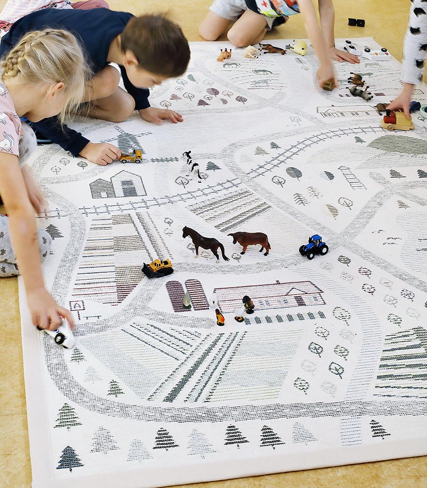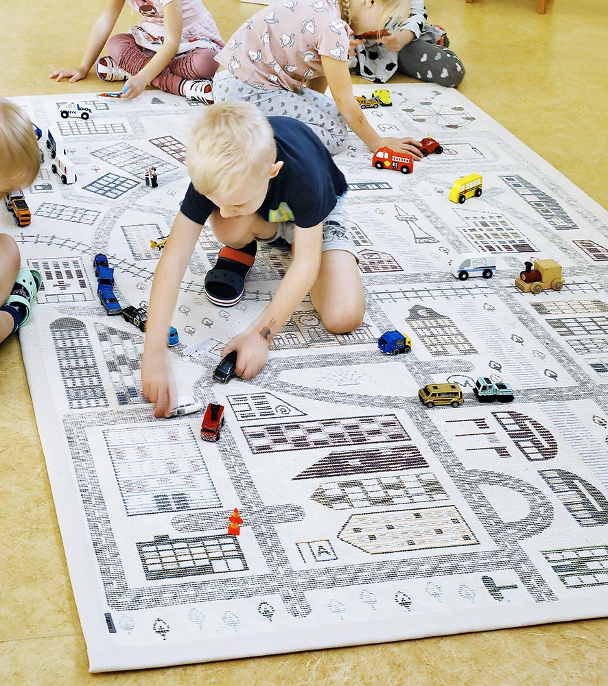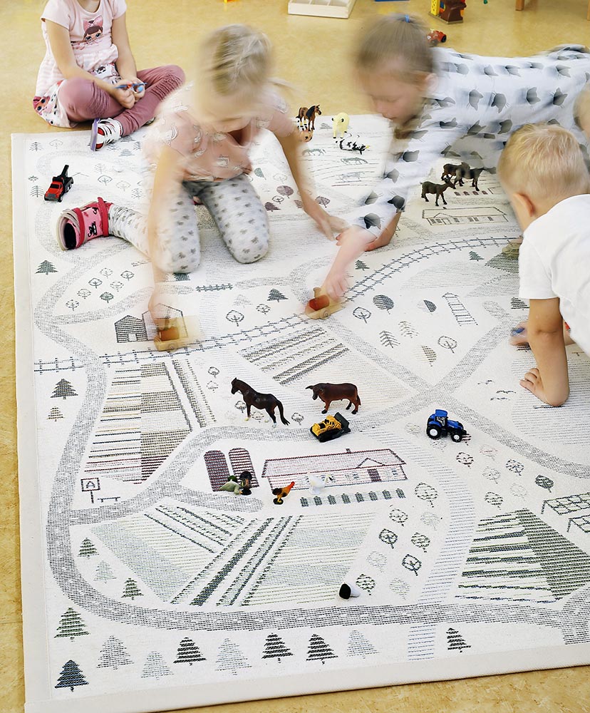 Efter tvätt – skölj noggrant, pressa ur överflödigt vatten och låt torka i ett varmt, ventilerat utrymme. Sträck gärna mattan lätt medan den är fuktig för att behålla formen.