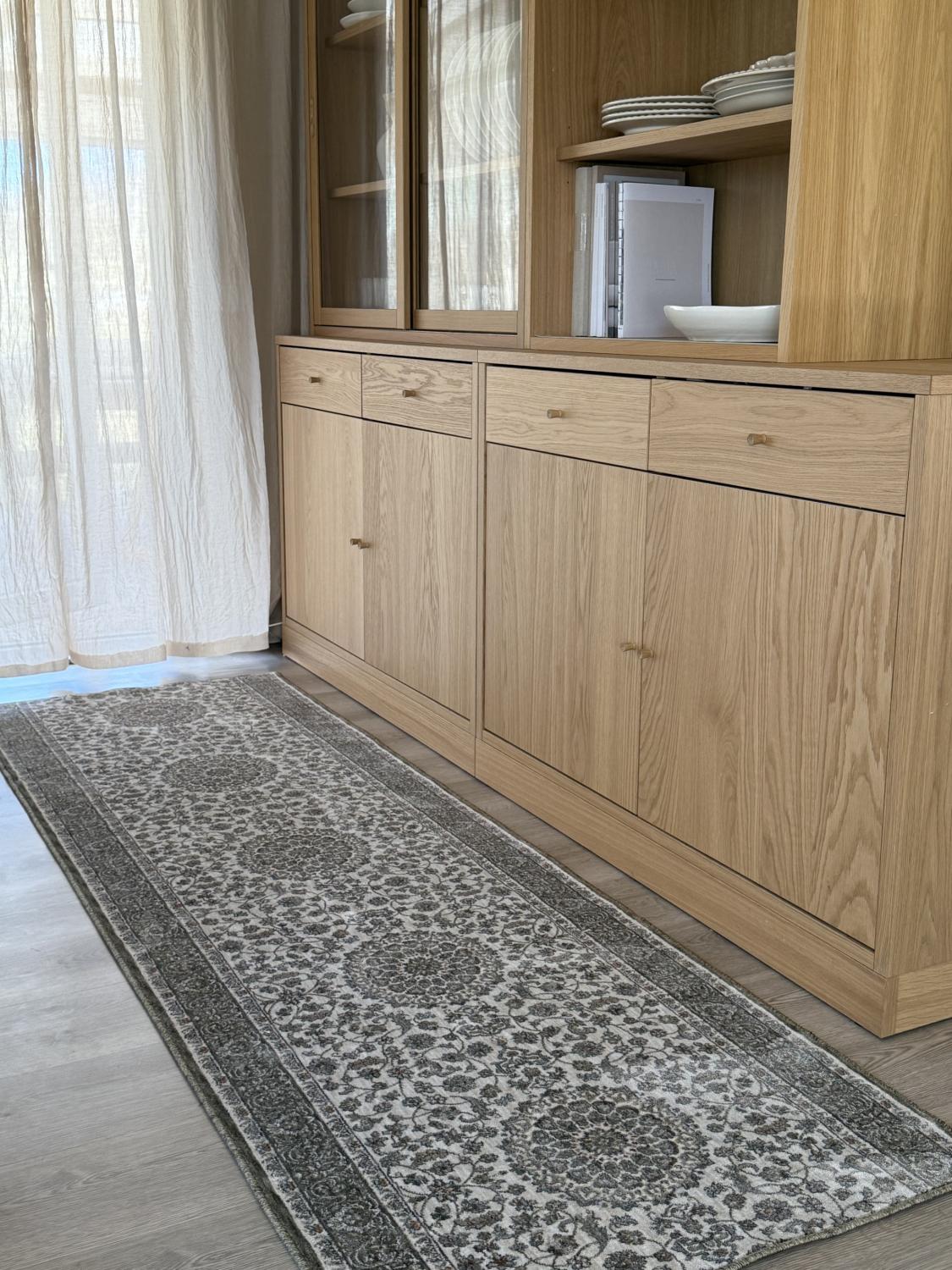 Palace Olive Groove kombinerar det bästa av två världar – en klassisk design med moderna egenskaper som gör mattan både vacker och praktisk. Det intrikata medaljongmönstret med sin dekorativa bård för tankarna till traditionell hantverkstradition, men i en dämpad olivgrön och grå färgpalett som passar perfekt in i det skandinaviska hemmet. De mjuka tonerna harmonierar fint med ljusa väggar, träinslag och naturliga textilier – och skapar en lugn, tidlös atmosfär.
