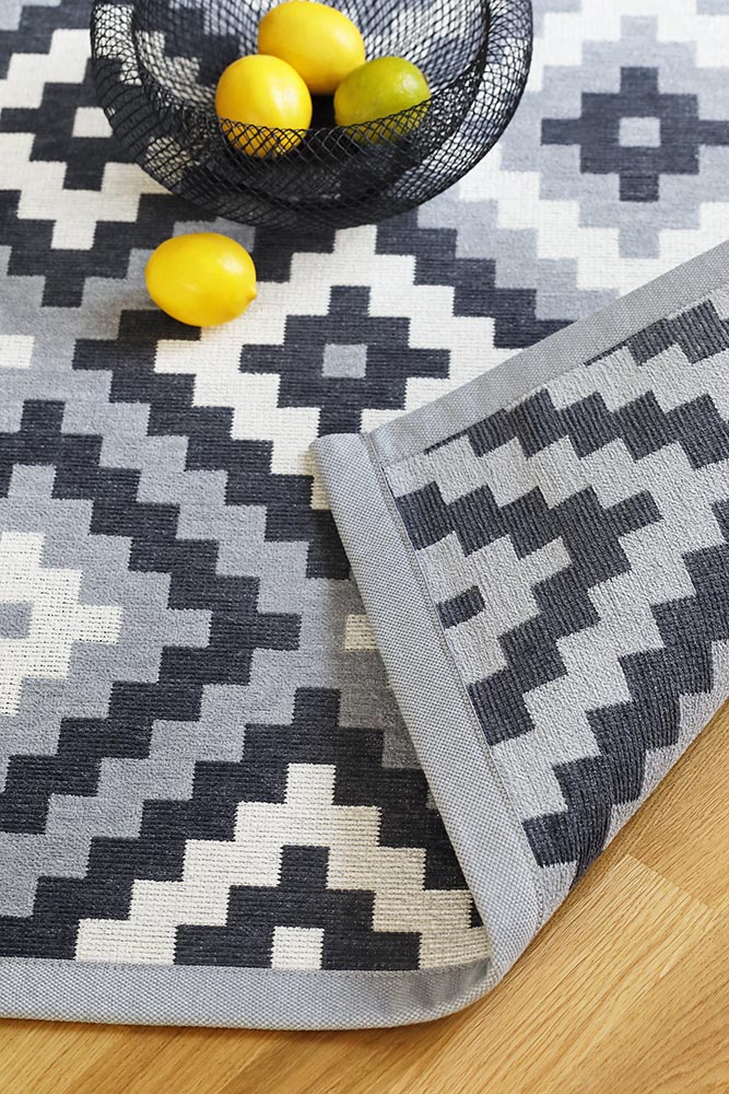 Baksida: Vändbar matta med unikt mönster på baksidan.