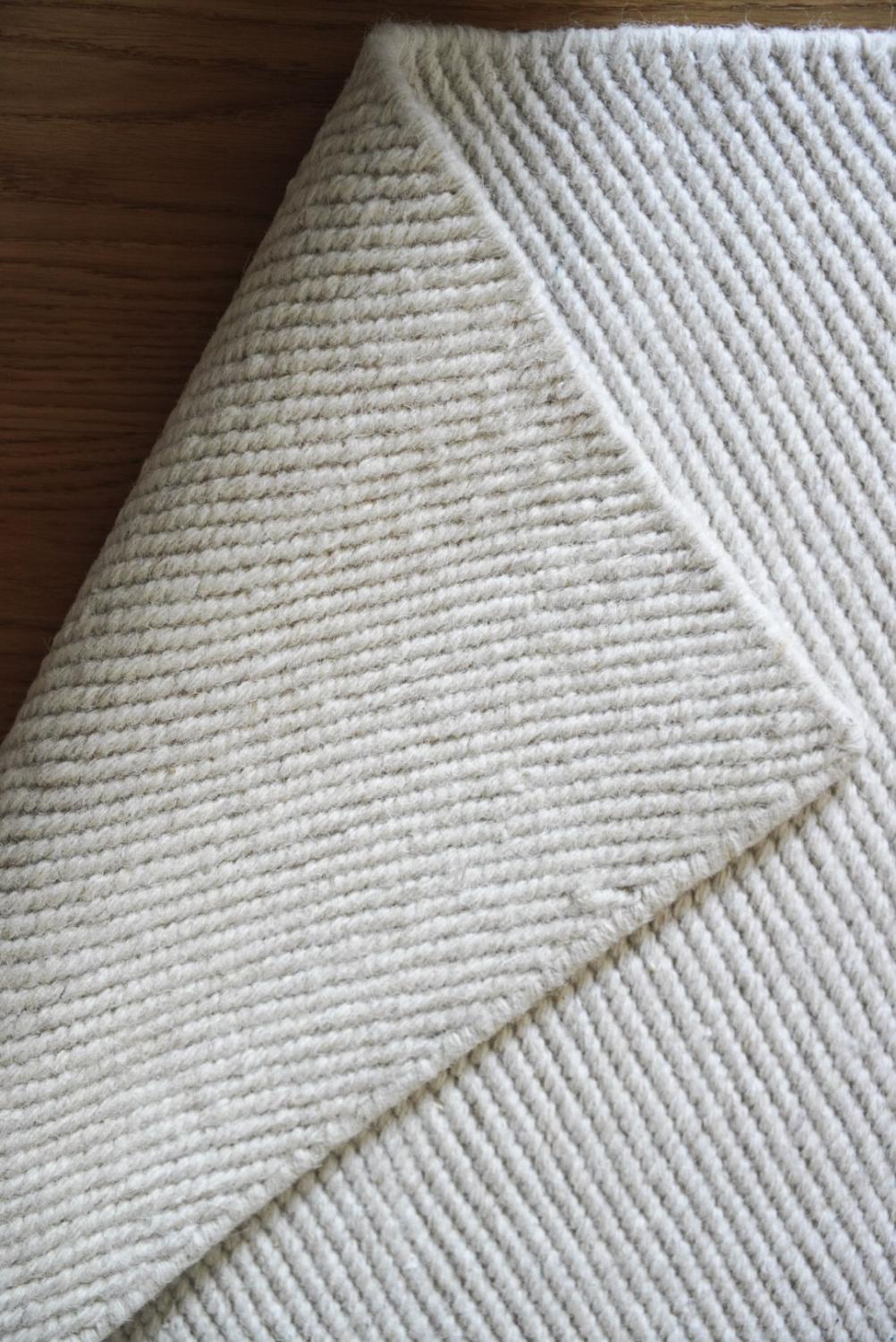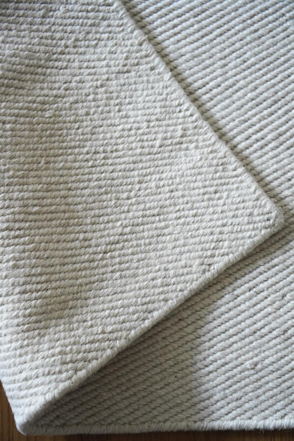 Rushmore är en stilren ullmatta som är handvävd i vit ton. Mattan har ett fint stukturmönster med en dekorativ langettering som matchar mattans färg.