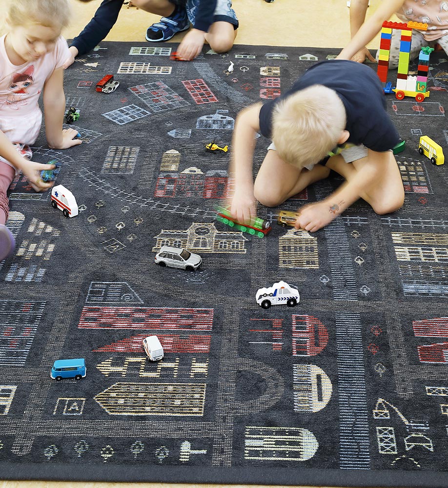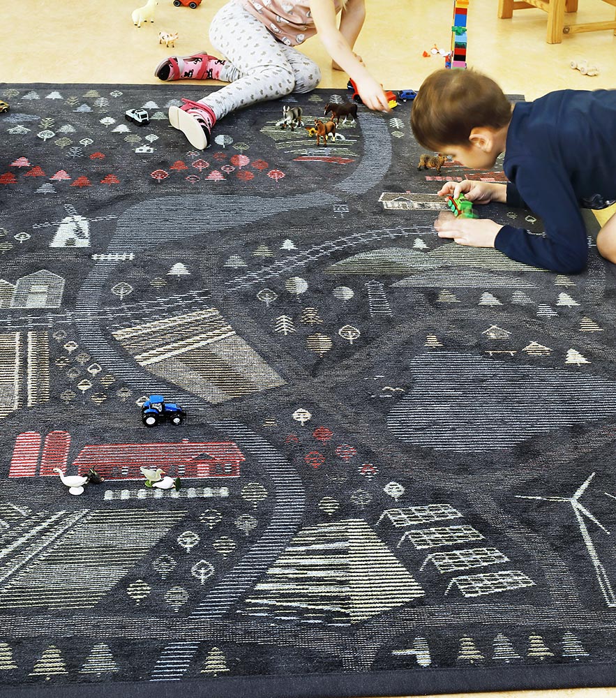 Efter tvätt – skölj noggrant, pressa ur överflödigt vatten och låt torka i ett varmt, ventilerat utrymme. Sträck gärna mattan lätt medan den är fuktig för att behålla formen.